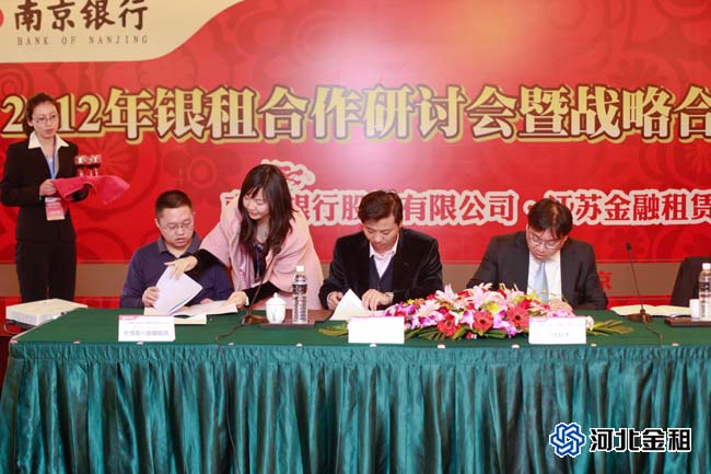 此次會議,我公司與南京銀行在綜合授信、資金融資、應(yīng)收租賃款回購、聯(lián)合融資、理財資產(chǎn)推薦、客戶推薦、投行業(yè)務(wù)等方面達(dá)成了合作共識,為致力于建立長期、穩(wěn)定、互利、共贏的全面戰(zhàn)略合作伙伴關(guān)系,不斷提升雙方的合作深度與廣度,公司總裁徐敏俊與南京銀行副行長禹志強在簽字儀式上簽署了《戰(zhàn)略合作協(xié)議》。