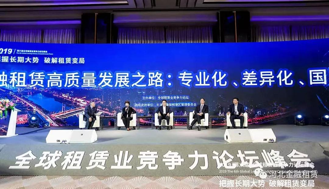租賃行業(yè)一年一度的行業(yè)盛會(huì)——2019(第六屆)全球租賃業(yè)競爭力論壇峰會(huì)于11月6日至8日在天津成功舉辦。本次峰會(huì)有來自境內(nèi)外600多家機(jī)構(gòu)參加,匯聚了租賃公司與行業(yè)上游銀行、保險(xiǎn)、基金等機(jī)構(gòu)及下游高端制造、汽車、工程機(jī)械等廠商。河北省金融租賃有限公司(以下簡稱“公司”)受邀參加峰會(huì),公司董事長徐敏俊作為特邀嘉賓參加了“金融租賃高質(zhì)量發(fā)展之路”高峰圓桌。