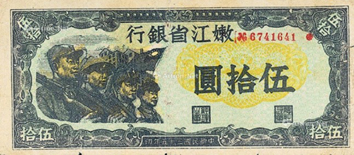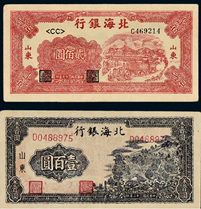 在抗戰勝利結束時,山東解放區已有極大發展,有12.5萬平方公里的面積,占山東總面積的92%,擁有2400萬人口,占山東總人口的90%。1948年10月,山東的北海銀行幣與華北的冀南銀行幣、晉察冀邊區幣固定比價互相流通,1948年11月16日起,北海銀行幣與華中銀行幣等價流通。這一時期的北海銀行幣均不加蓋地名,便于山東以外的地區流通。1948年12月1日,華北銀行、北海銀行、西北農民銀行合并,在石家莊成立中國人民銀行,但因工作的需要,北海銀行繼續營業,1949年1月底開始回收北海銀行幣,同年11月1日改稱中國人民銀行山東分行,至此,北海銀行完成了它的歷史使命宣告結束。