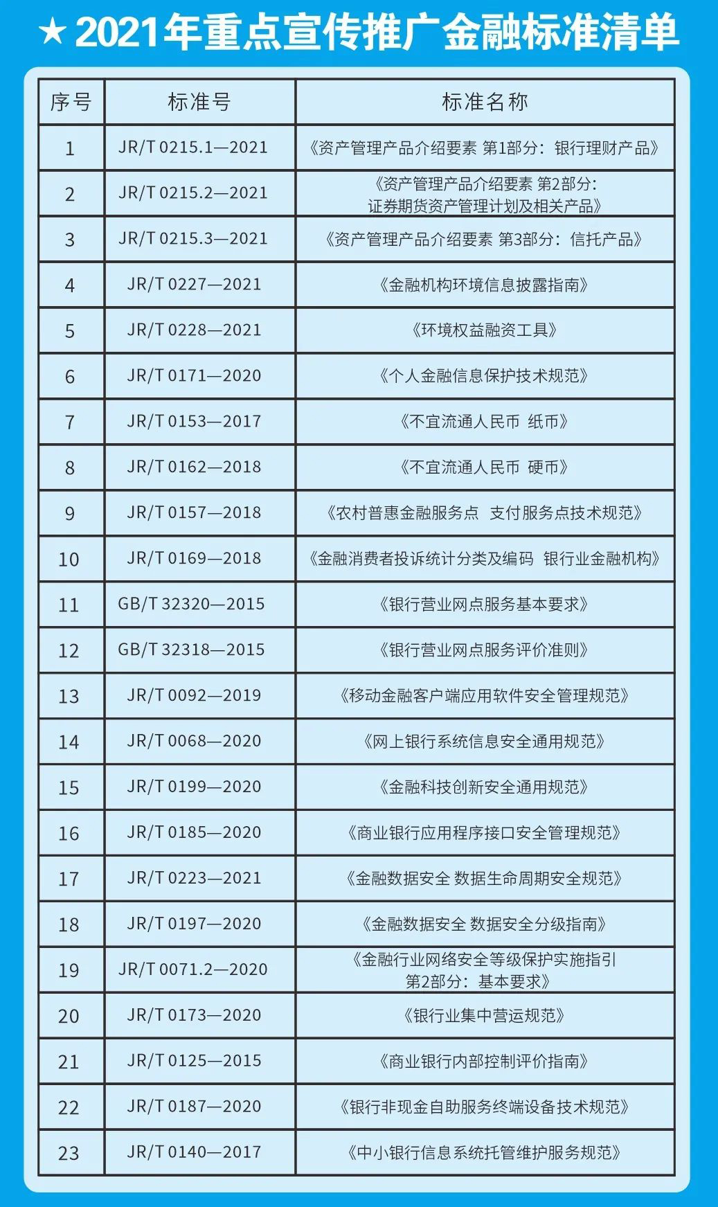 金融標(biāo)準(zhǔn)是金融業(yè)健康發(fā)展的技術(shù)支撐,是金融業(yè)治理體系和治理能力現(xiàn)代化的基礎(chǔ)性制度,中國人民銀行宣傳推廣重點金融標(biāo)準(zhǔn),切實做好金融從業(yè)人員及消費(fèi)者金融標(biāo)準(zhǔn)化宣教和普及工作,在行業(yè)內(nèi)營造對標(biāo)達(dá)標(biāo)的良好氛圍,引導(dǎo)消費(fèi)者使用達(dá)標(biāo)服務(wù)與產(chǎn)品,進(jìn)一步維護(hù)消費(fèi)者合法權(quán)益。