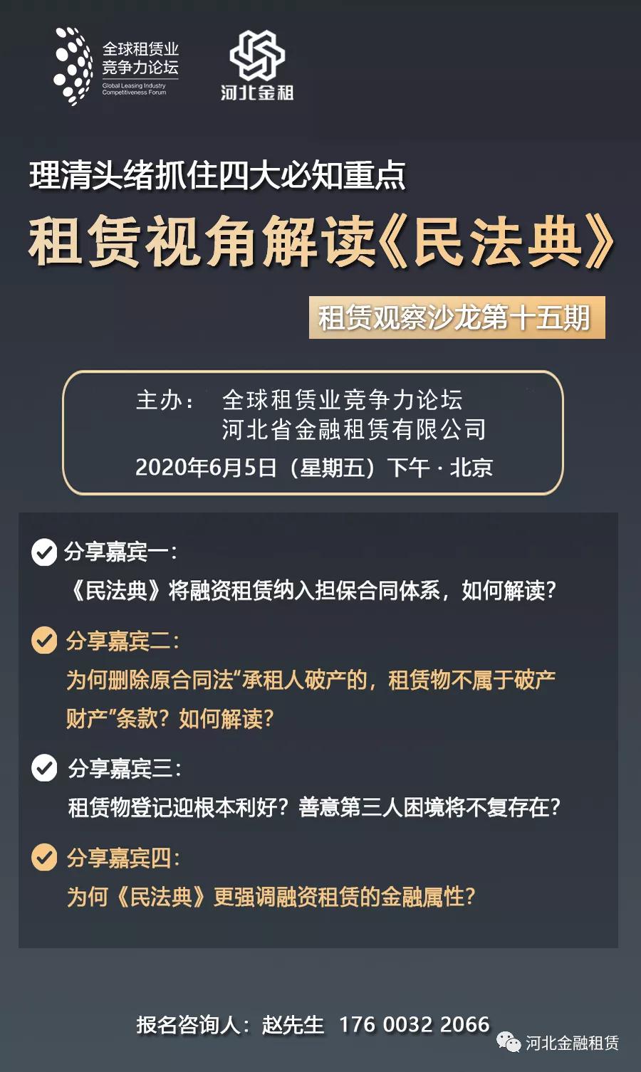 2020-07-08《中華人民共和國民法典》近日正式公布,標志我國“民法典時代”到來。《民法典》涉及多項與融資租賃密切相關的法律條款,擴大了動產擔保合同的范圍,將融資租賃納入擔保合同,將對融資租賃業的經營活動產生深遠影響。 6月5日下午,全球…